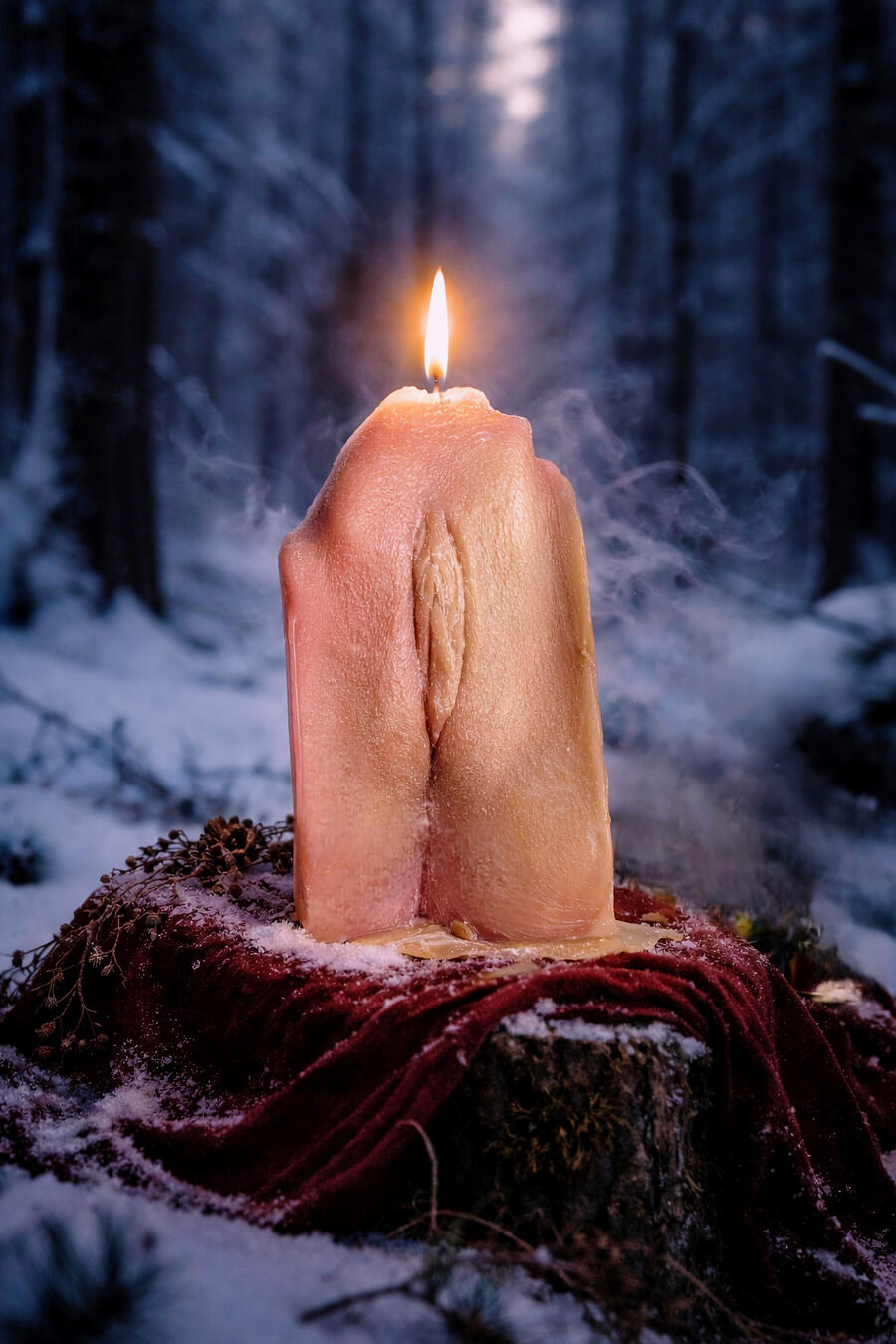3. Wax — the cast becomes a wax vulva candle